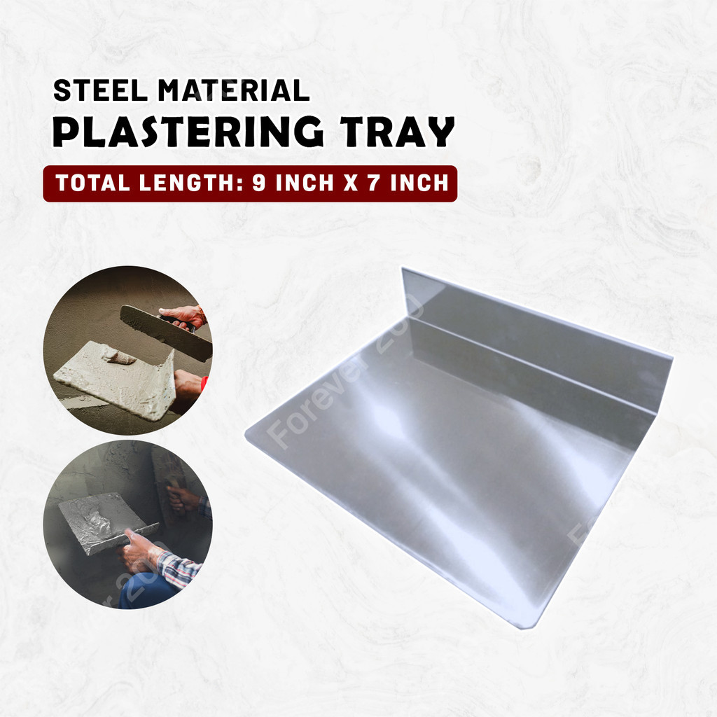 (7inch x 9inch) Plastering Tray Ceiling Work Stainless Steel L-Tray Gypsum Putty Tray Plaster Wall Flooring Tool