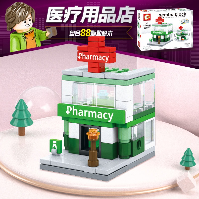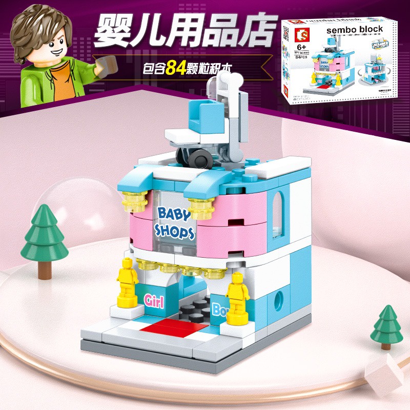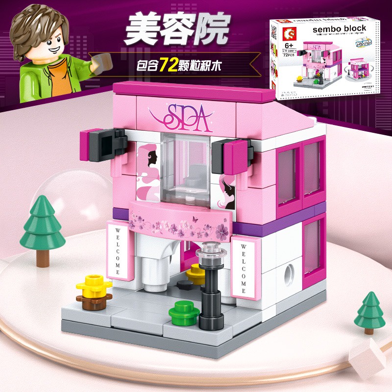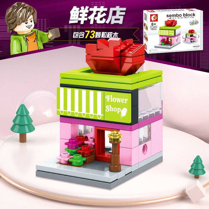 (8-in-1) Sembo Block Building MINI Street SD City View Commercial Shop Creative Collection Girl Boy Toy Brick Combo Set