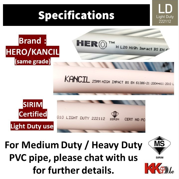 (9.50 feet Uncut) 30 pcs x 20mm HERO/KANCIL (SIRIM) PVC HI-Impact Conduit Pipe DIY Pvc Pipe 9.5ft (290cm) - White