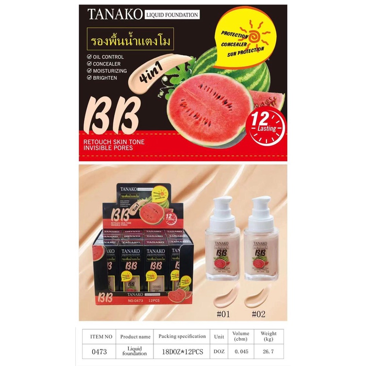 (AIKO) TANAKO WATERMELON 4 IN 1 BB CREAM LIQUID FOUNDATION (0473)
