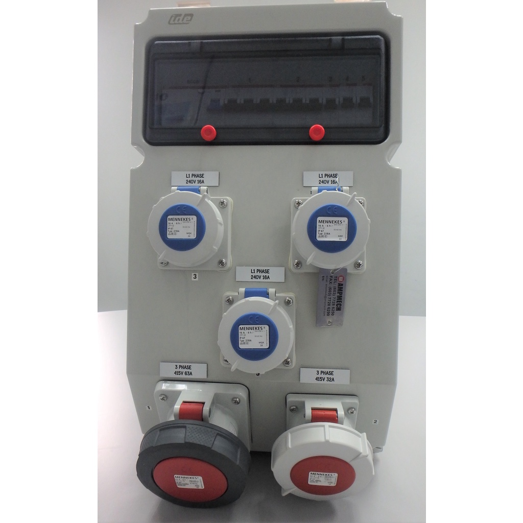 (AMPMECH) AMIX MULTI DISTRIBUTION BOX, IP66, RCCB/ABB MCB/ MENNEKES SOCKET/TERM. BLK/63A3P/32A3P/16A1P/M40 CABLE ENTRY