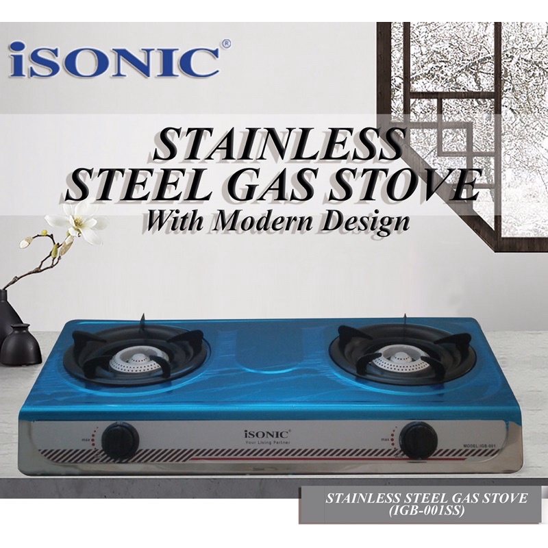 (BUBBLE WRAP) ISONIC STAINLESS STEEL GAS COOKER IGB-001/ DAPUR GAS STOVE IGB001 DOUBLE BURNER