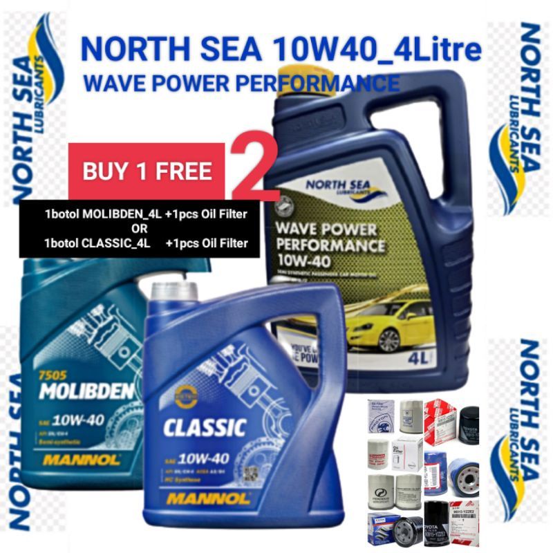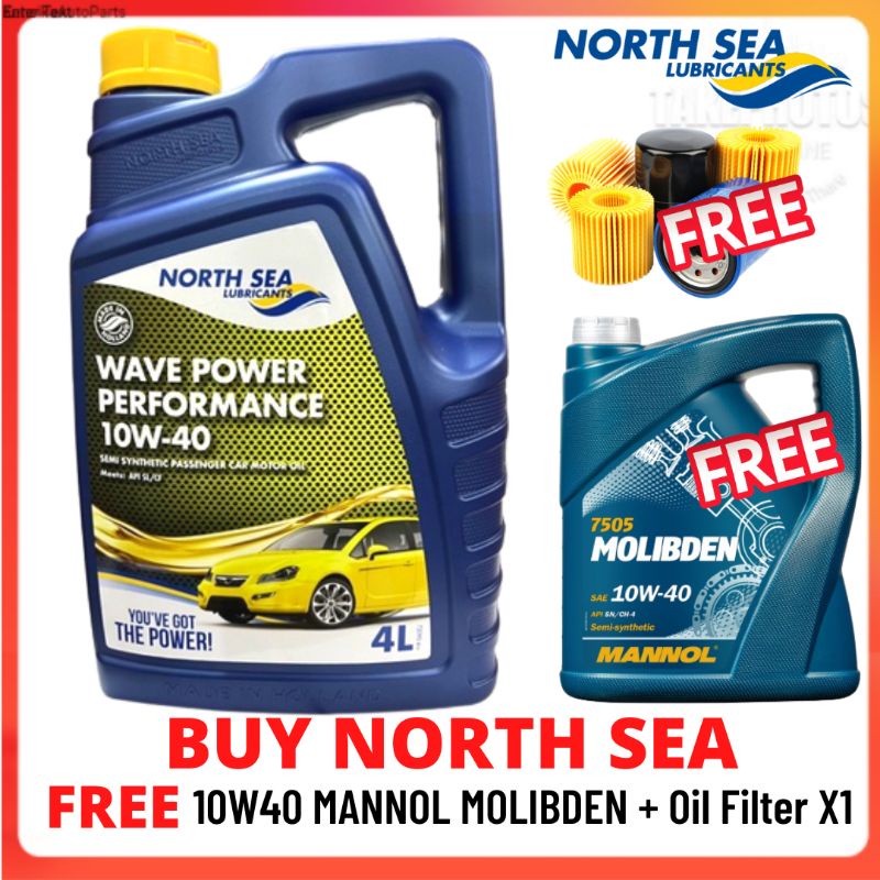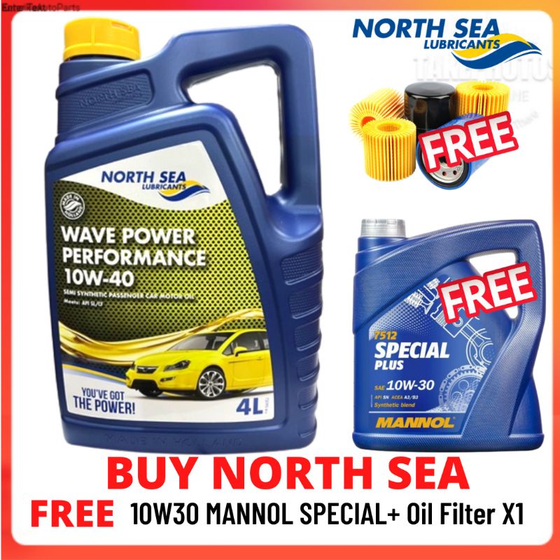 (BUY 1 FREE 2) North Sea Wave Power Performance 10W40 4L Semi Synthetic Free Engine Oils 4L FREE Oil Filter