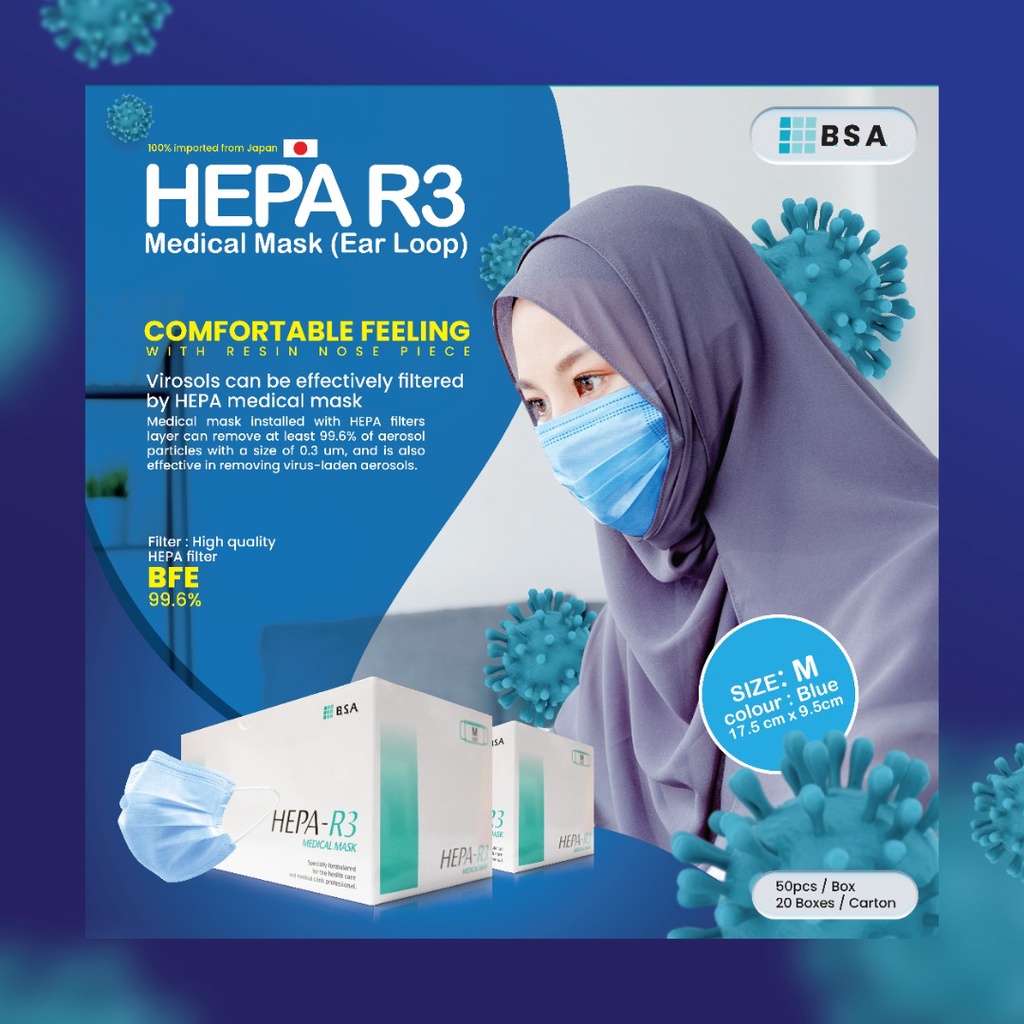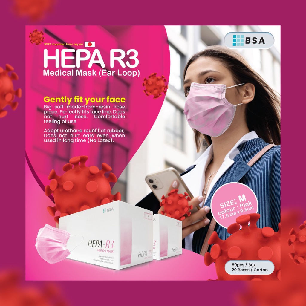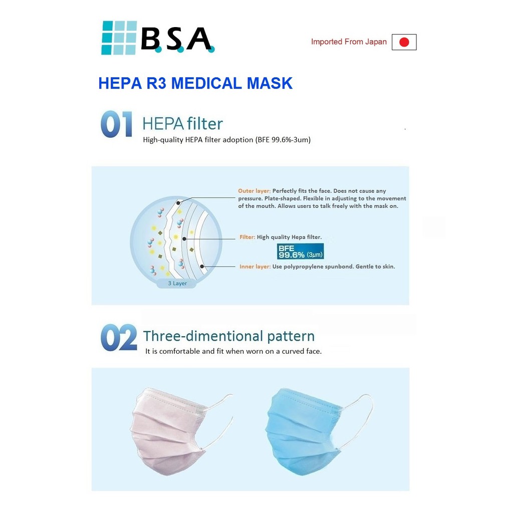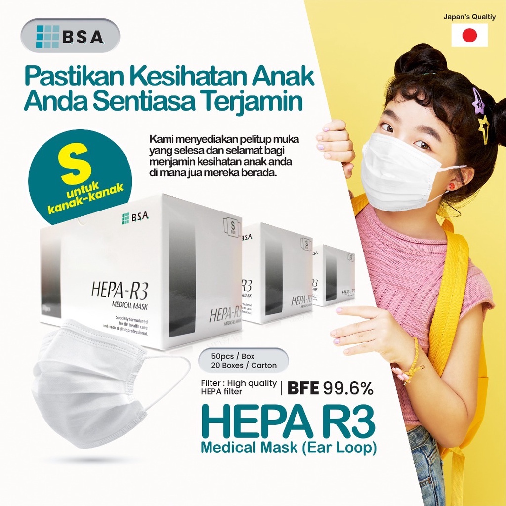 [BUY 2 FREE 1] Face Mask BSA HEPA R3 Japan Quality Medical Face Mask Adult/Kids/Earloop/Tie-On