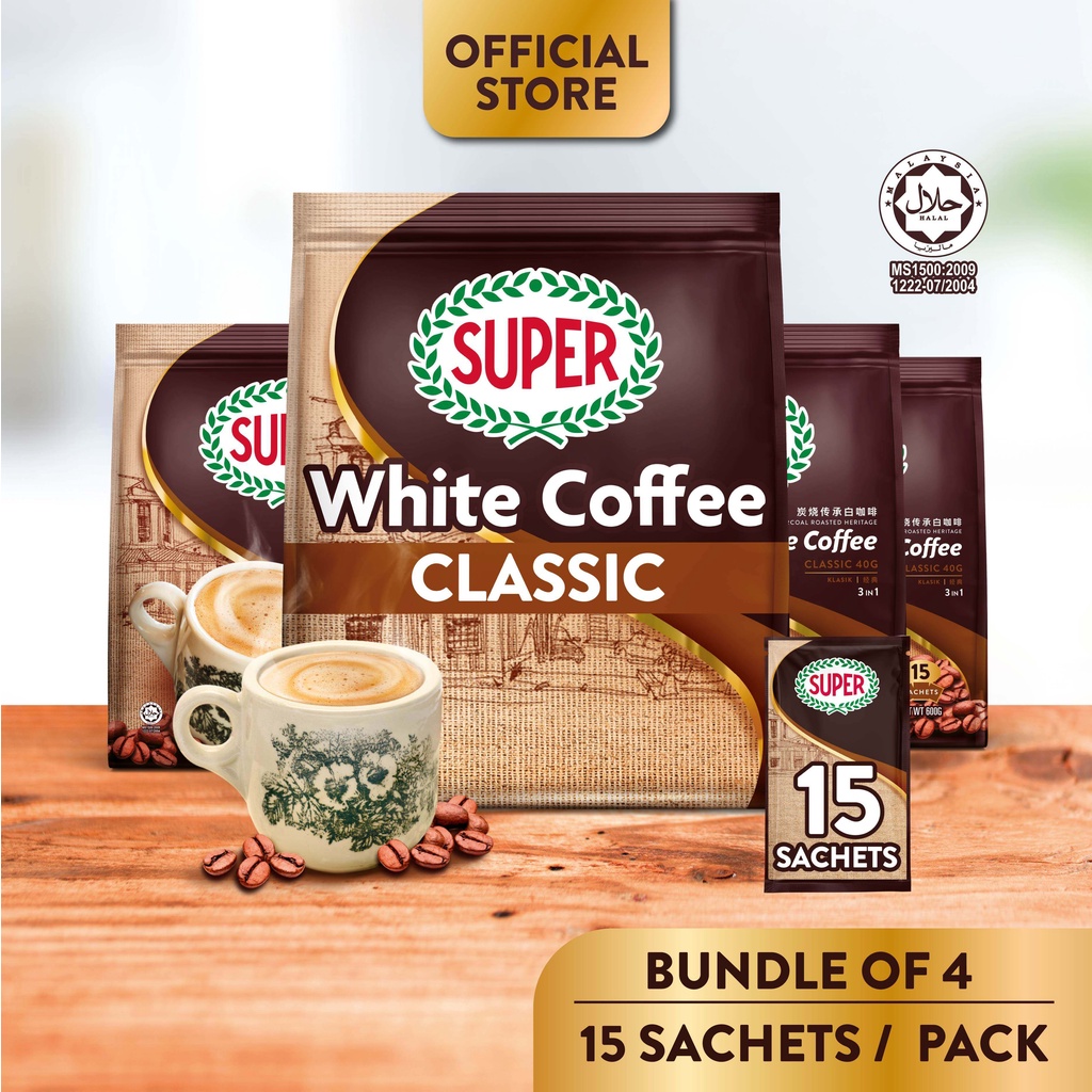 (Bundle of 4) SUPER Instant 3in1 White Coffee, 15 sachets [HALAL]