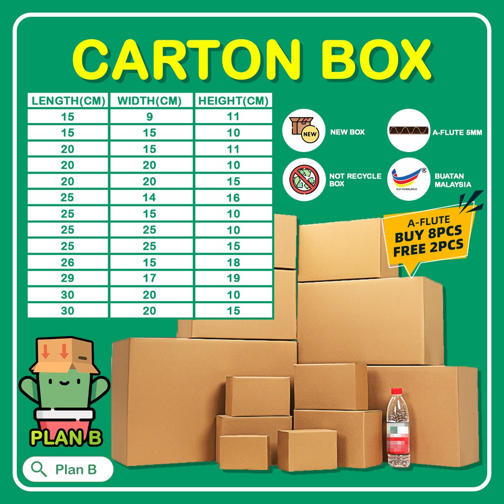 (Buy 8 FREE 2pcs) PlanB A Flute / A Series Carton Box Packing Box Packaging Box Kotak