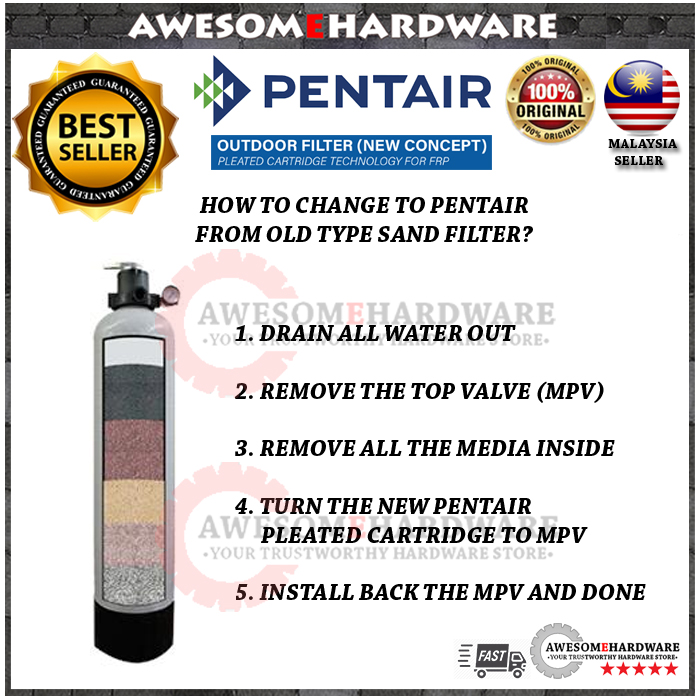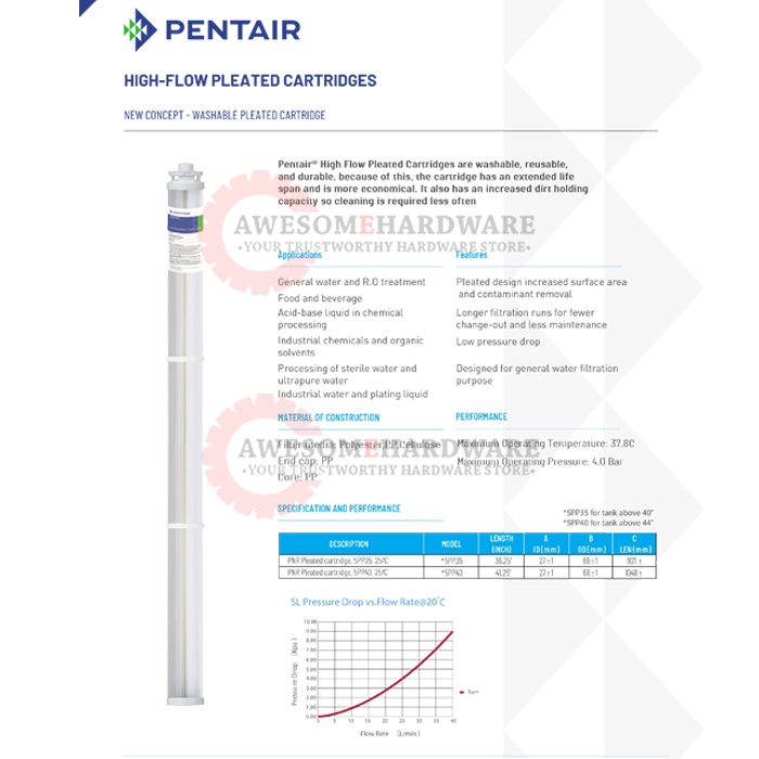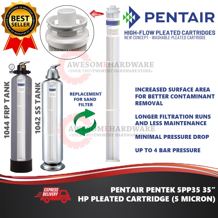 (CARTRIDGE ONLY) PENTAIR PENTEK 5PP35 5 MICRON HF PLEATED CARTRIDGE WATER FILTER REPLACE SAND FILTER FRP 0942 1044 1042