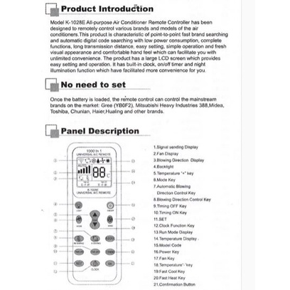 (CHUNGHOP)Universal Aircond Remote Control All Brand/Model Supported AC Remote Control Air Condition LCD Backlight A/C