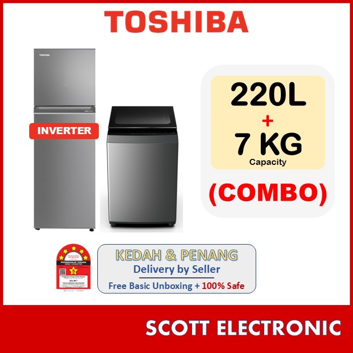 (COMBO) TOSHIBA 220L 2 Doors Refrigerator GR-RT230WE-PMY + TOSHIBA 7KG Greatwaves Fully Auto Washing Machine AW-M801