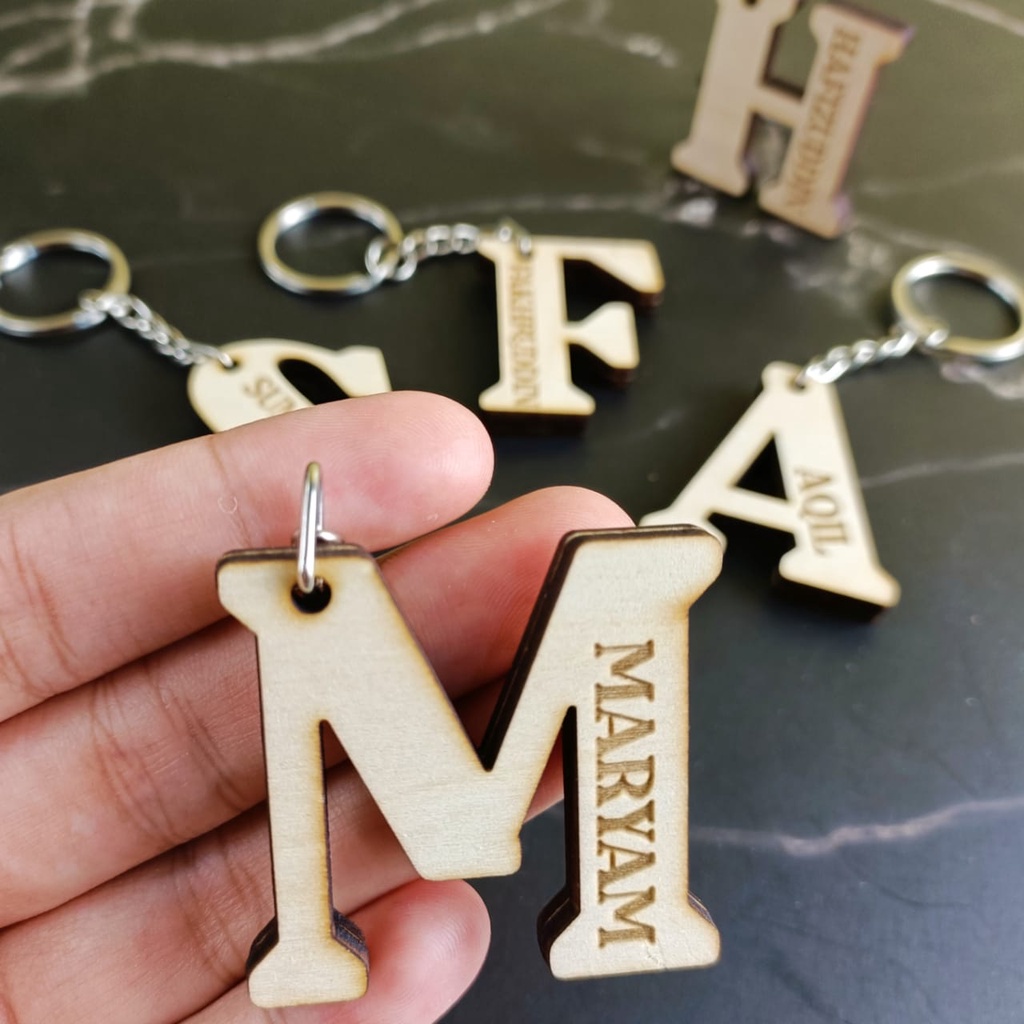 (CP011) Alphabet Keychain Custom Name Customized Keychain Engrave Keychain Nama Wood Acrylic Engraving Gift