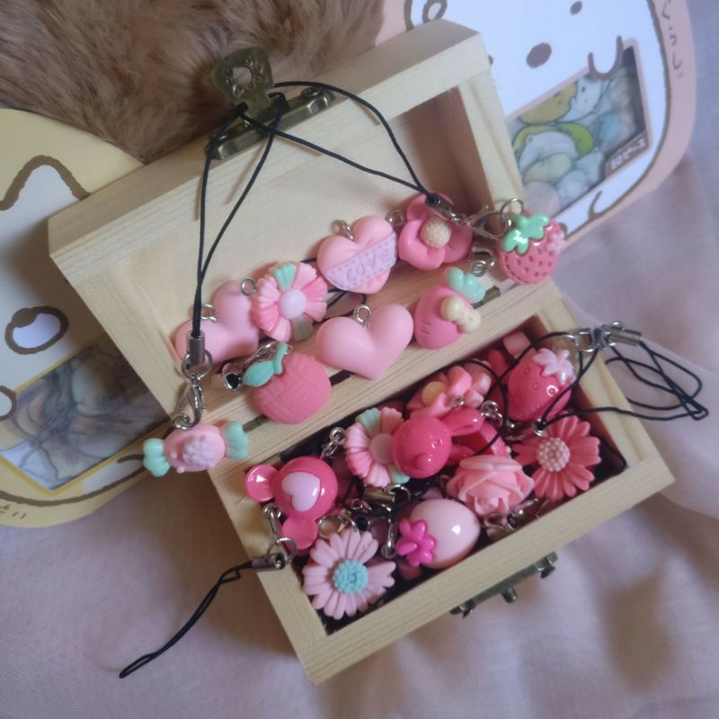 (Catalog 1)1pcs Mini Keychain with Name Phone Lanyard Cute Kawaii Small with Jingle Bell