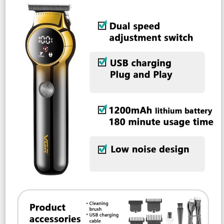 (Combo B) VGR Gold Series (1 + 1) Electric Hair Clipper Hair Trimmer for Barber Mesin Gunting Rambut