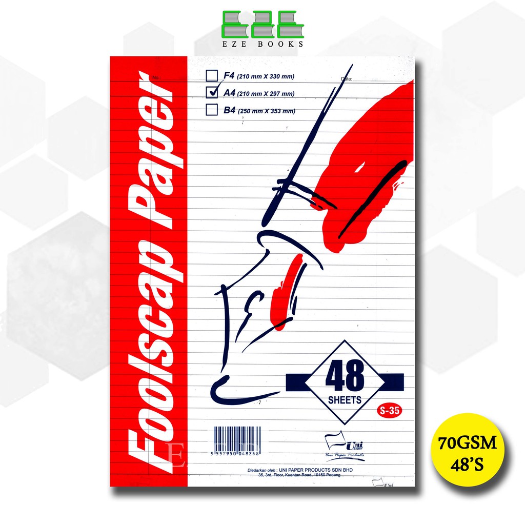 (EZE) UNI A4 FOOLSCAP PAPER WRITING PAD | EXAM SHEET | KERTAS KAJANG