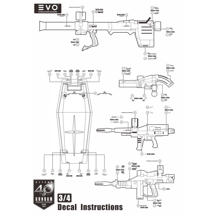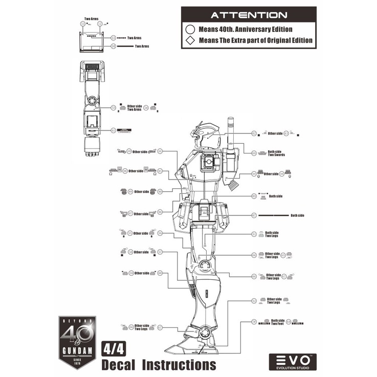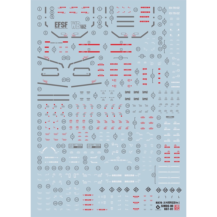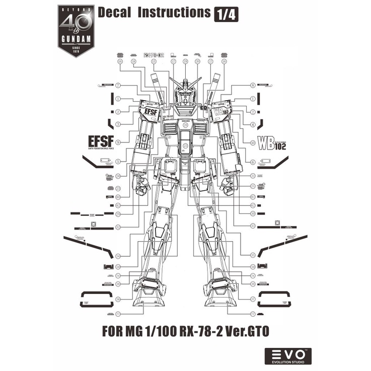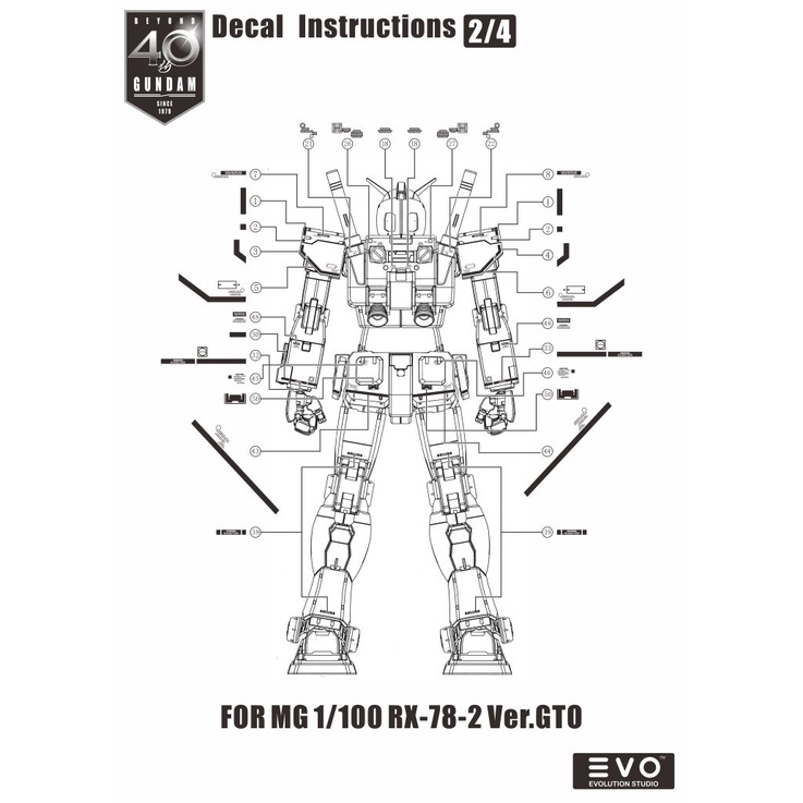 (Evo) Water Slide Decal - MG 1/100 RX-78-02/RX78 GTO Gundam The Origin (40th Anniversary) Fluorescent