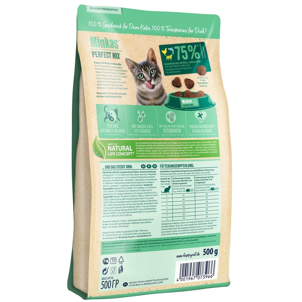 (Exp 10/2025) HAPPY CAT MINKAS 4KG (Perfect Mix / Hairball Control) - DRY CAT FOOD