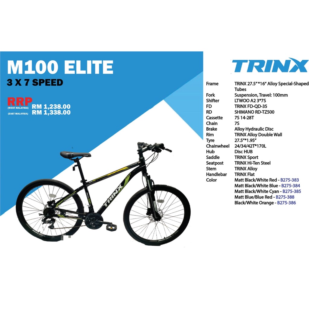 (FREE HELMET FREE SHIPPING) Trinx Bike 27.5" M100 ELITE MTB Bicycle / Shimano RD / Hydraulic Disc Brake / 3x7 Speed