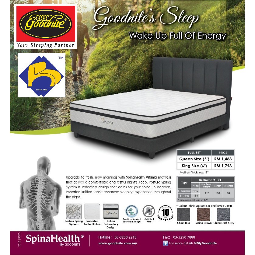 (FREE SHIPPING) Goodnite Vitania 11" Posture Spring Mattress/Tilam Spring Goodnite Vitania 11"