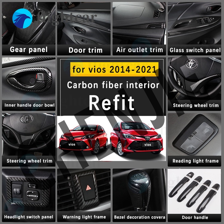 (FT) cod for Toyota Vios 2014 2015 2016 2017 2018 Carbon Fibre Car doors and windows Glass Lift Control Switch Panel Cover Trim car interior accessories