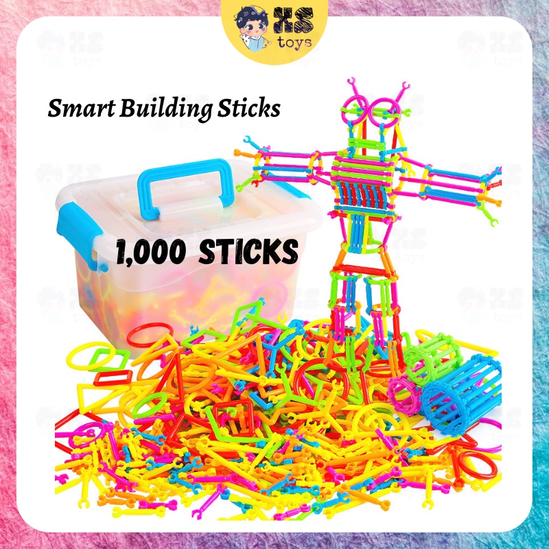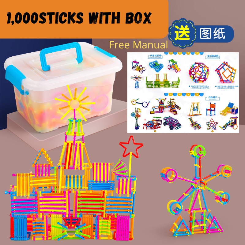 (Free Box) 1000pcs Smart Building Sticks DIY Assemble Blocks Kid Toys For Kids Mainan Rumah Kanak-Kanak