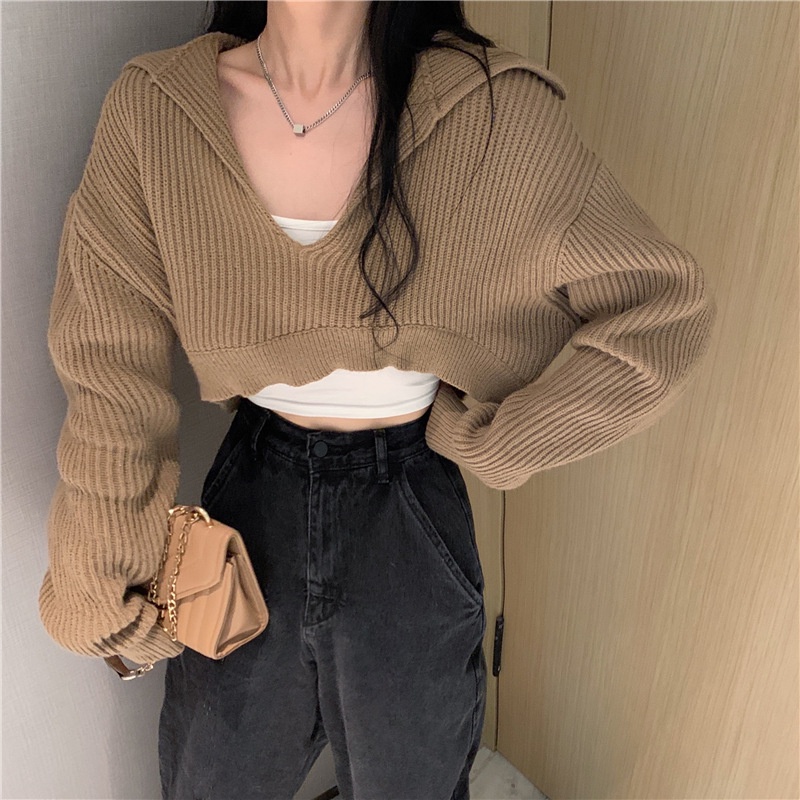 (Free Gift) Trendy Cropped Knitting Jacket Super Crop Hoodie Long Sleeve Crop Top