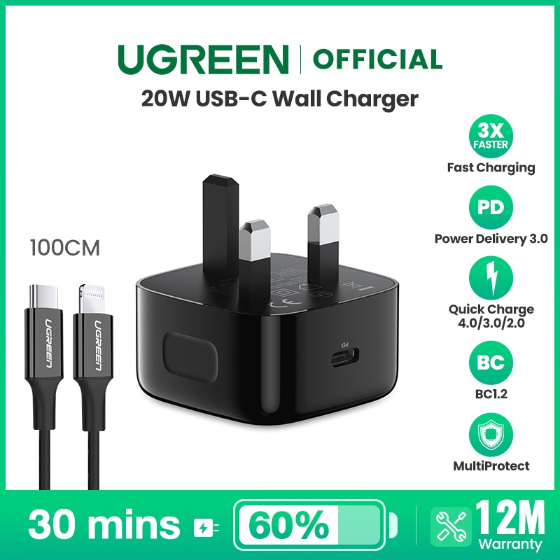 UGREEN 20W PD Fast USB Charger Quick Charge 4.0 3.0 Charger for iPhone 16 15 14 13 12 11 X XS XR 8