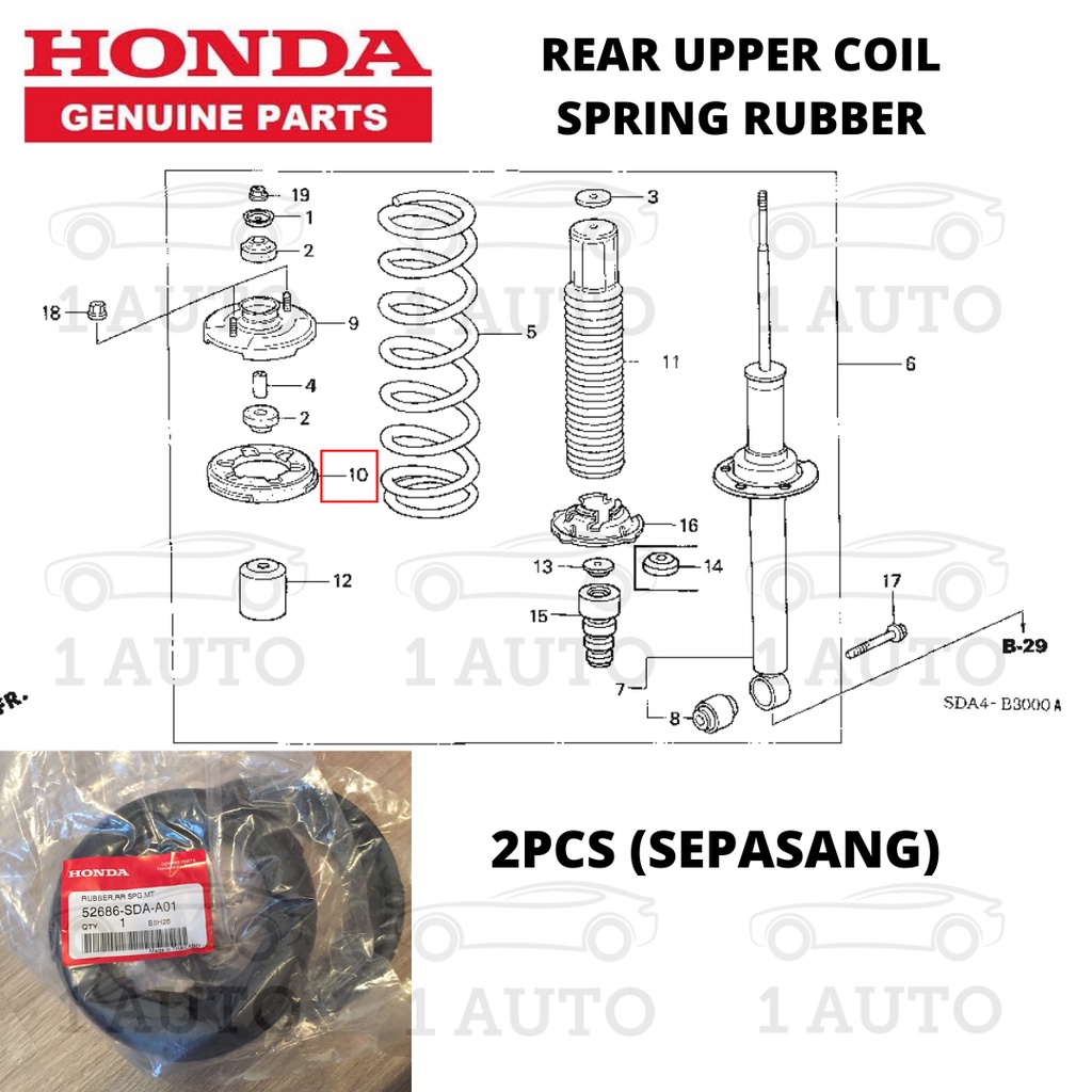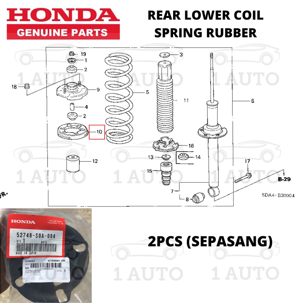 (GENUINE HONDA PARTS) REAR COIL SPRING RUBBER HONDA ACCORD SDA CM4 CM5 CL7 UPPER/ LOWER
