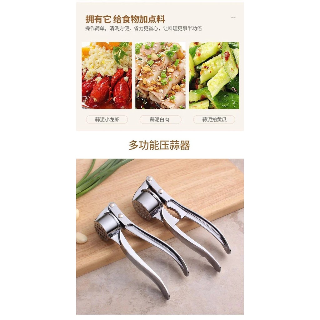 (GSF) Stainless Steel Round Kitchen Squeeze Tool Alloy Crusher Garlic Press 8616