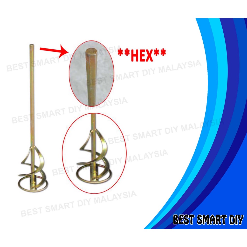 (HEX) Paint mixer 80mm X 400mm X 10mm HEAVY DUTY CEMENT PAINT PLASTER MIXER