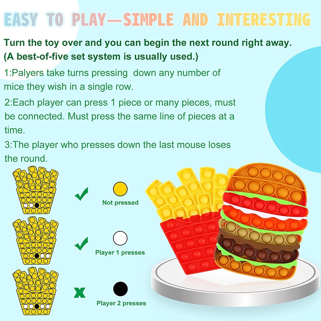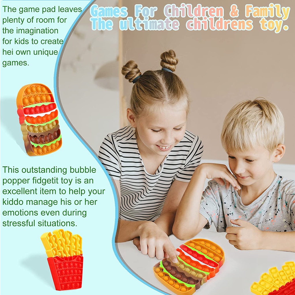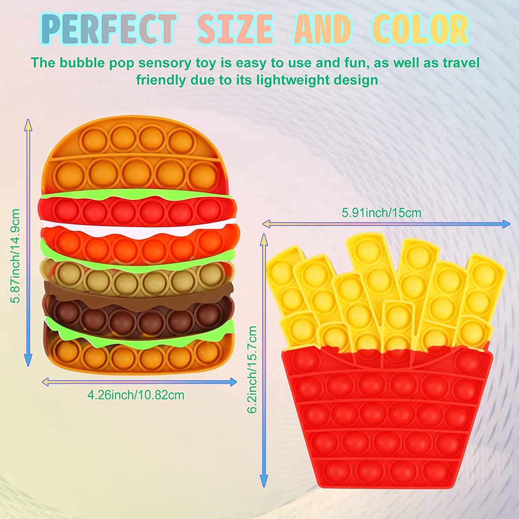 (Hamburger Fries)Pop It Push Bubble Pop Popping Sensory Fidget Toy For Adult And Children Stress Reliever Toy For Autism