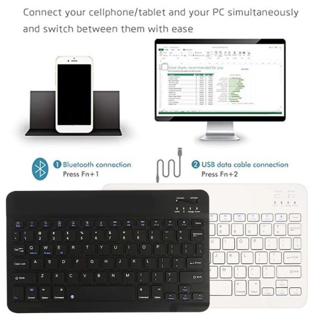 (High Quality) 7" BT Mini Ultra-thin Wireless Rechargeable Keyboard
