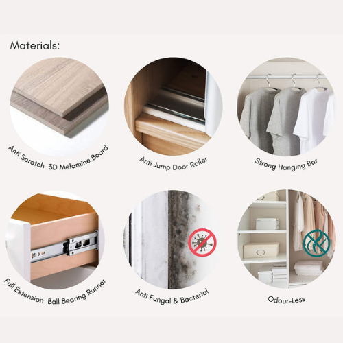 (INSTALLATION) 9FT X 9FT Height Custom Made Sliding Wardrobe/ Melamine Wardrobe/Almari Baju/Anti Jump (14-21 delivery)