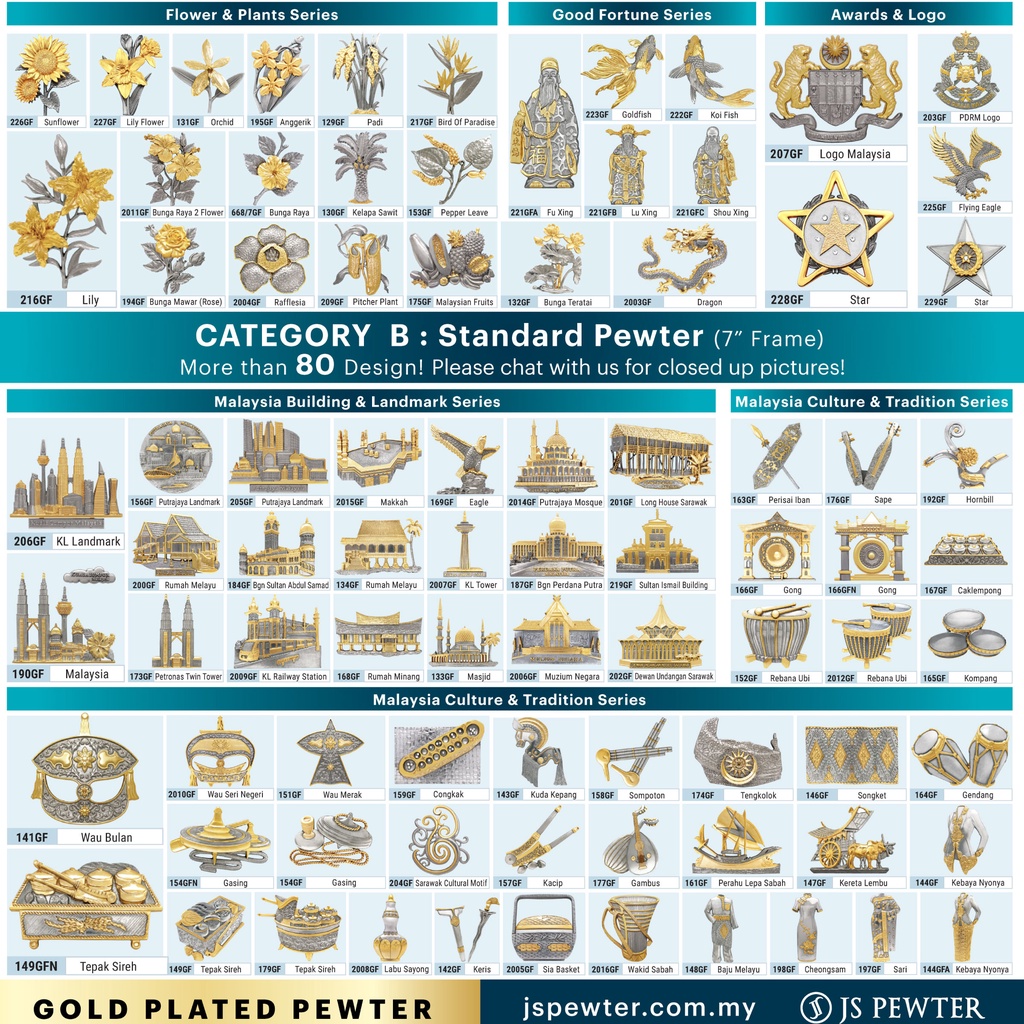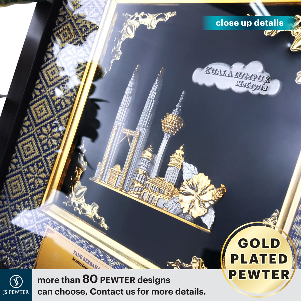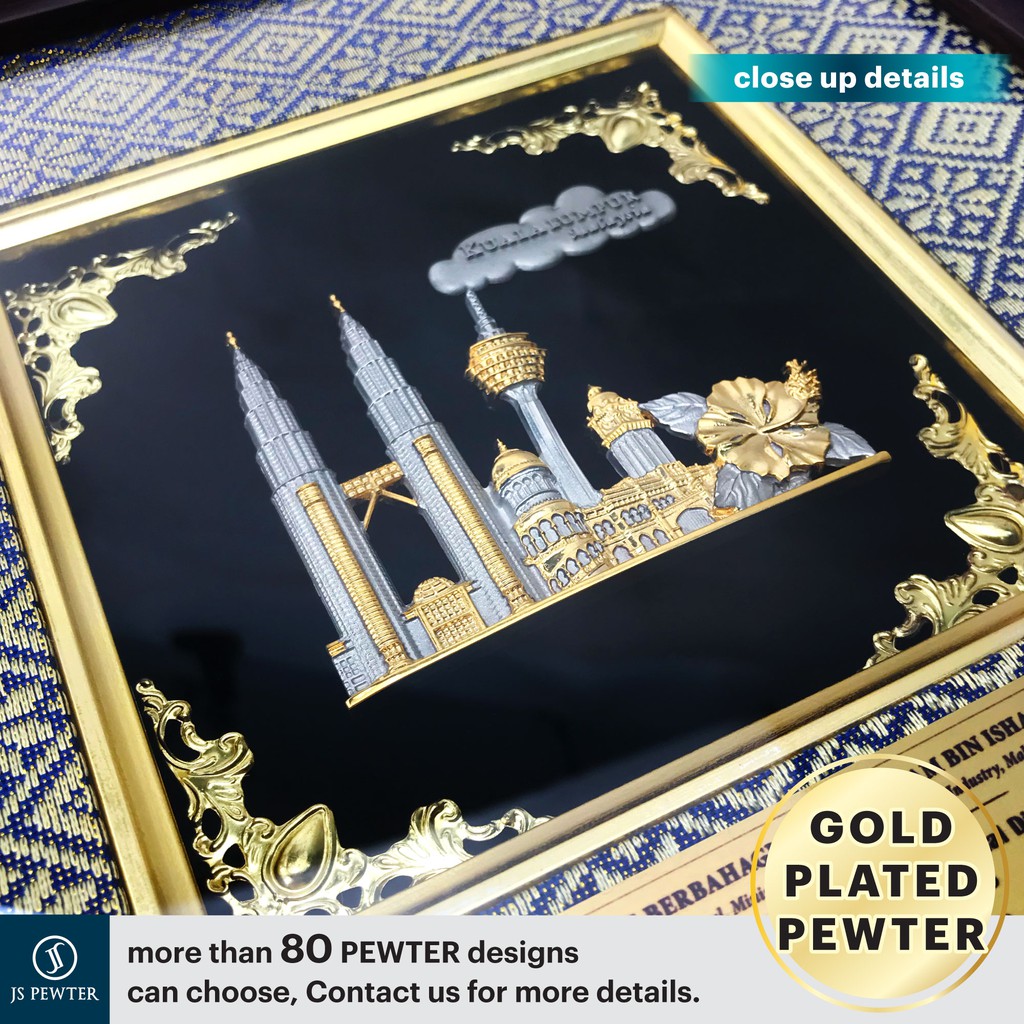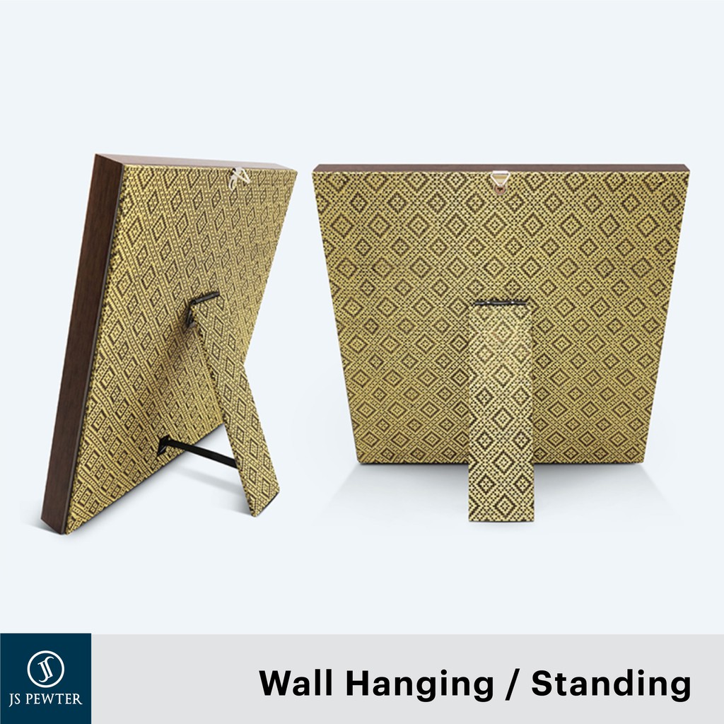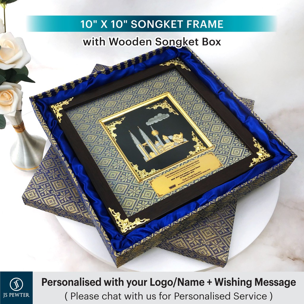 (JS Pewter) 10"x10" Songket Frame | Gold Plated PEWTER | Premium Wooden Songket Gift Box | Cenderahati Plak Hadiah Gifts