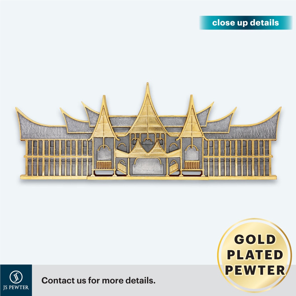 (JS Pewter) 11"x15.5" VIP Solid Wood Frame Gold Plated PEWTER | Rumah Minang | Gift Box | Corporate Gift | Cenderahati
