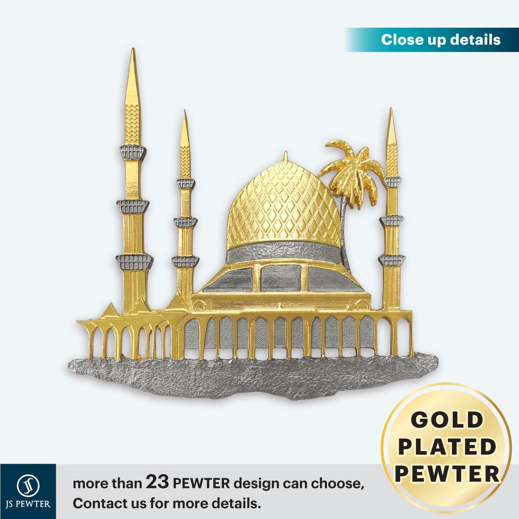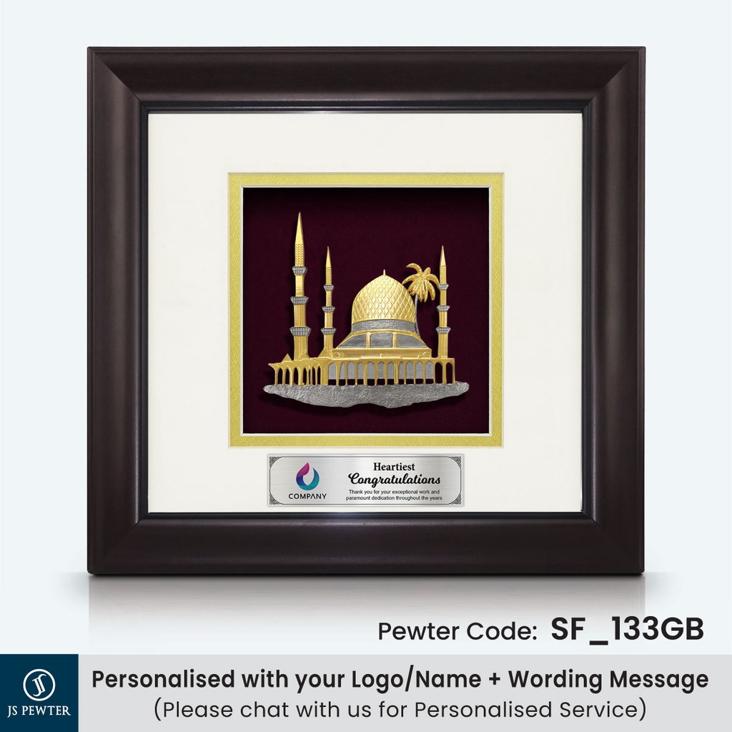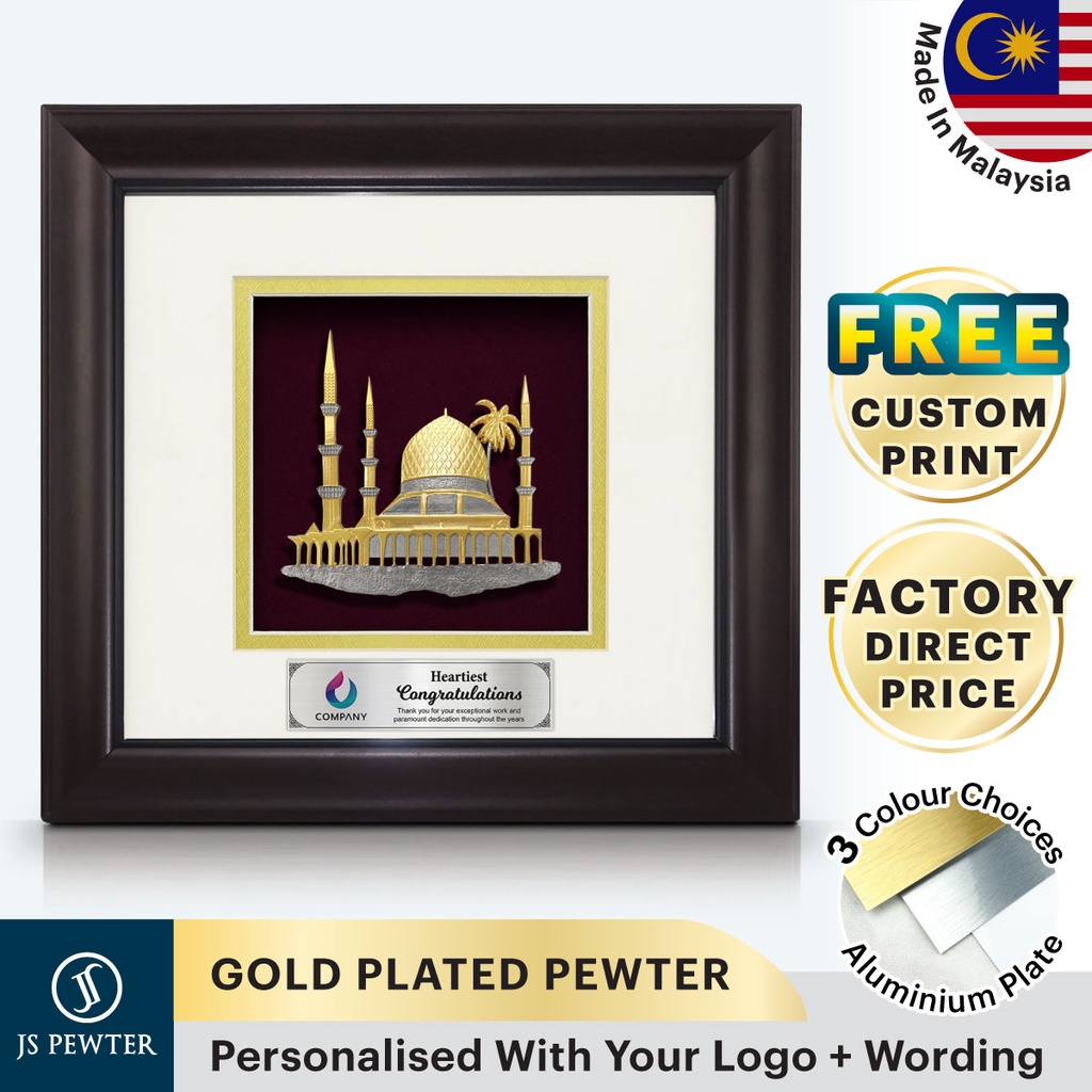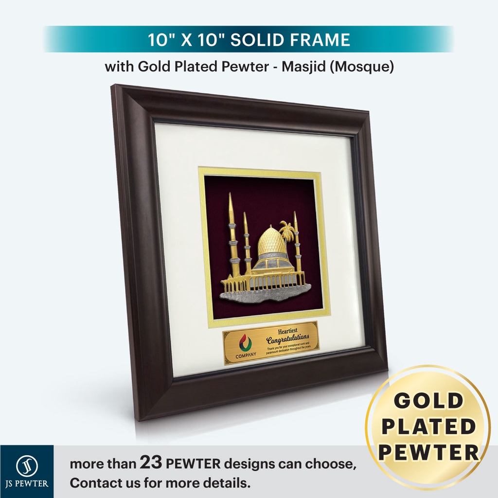 (JS Pewter) Solid Frame 10"x10" Gold Plated PEWTER | Mosque (Masjid) | Souvenir | Corporate Gifts | MALAYSIA