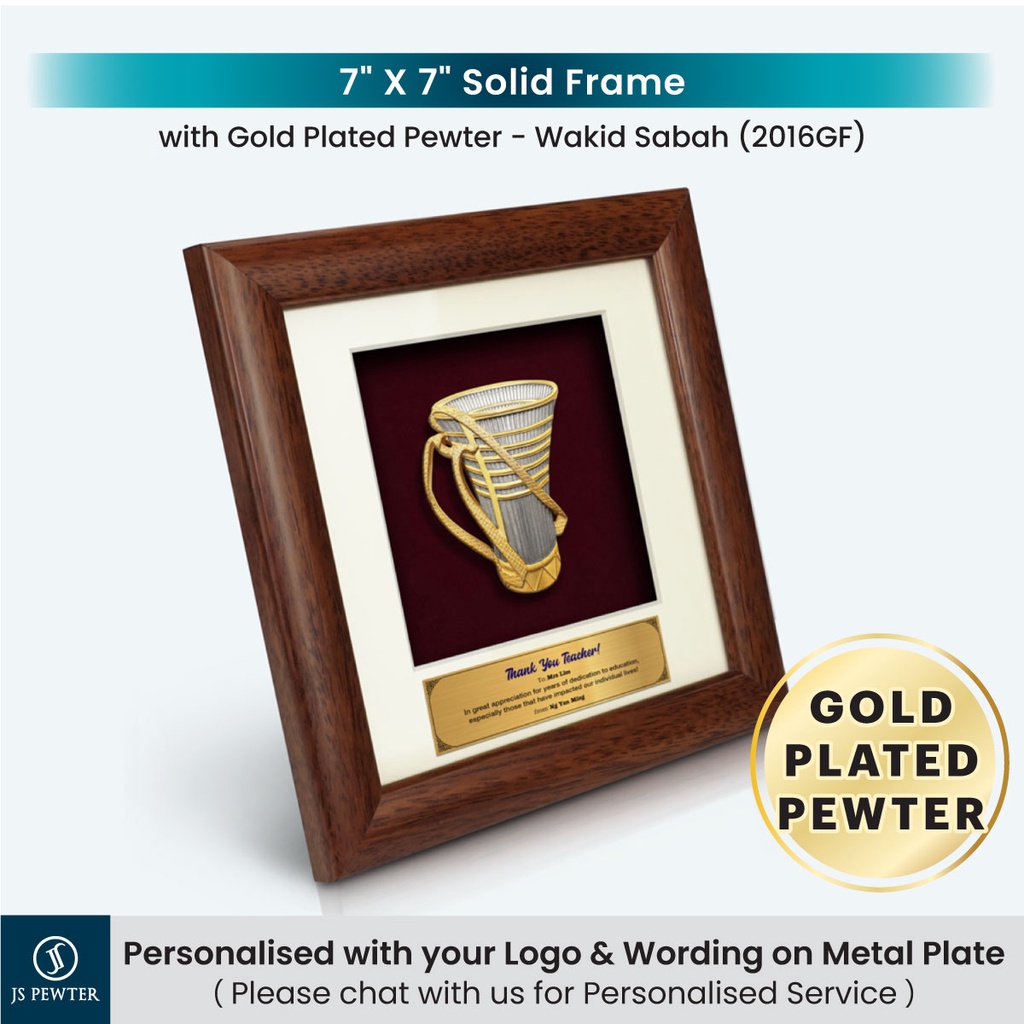 (JS Pewter) Wakid Sabah | Gold Plated Pewter | 7" x 7" Solid Frame | Cenderahati Premium Corporate Gifts & Award