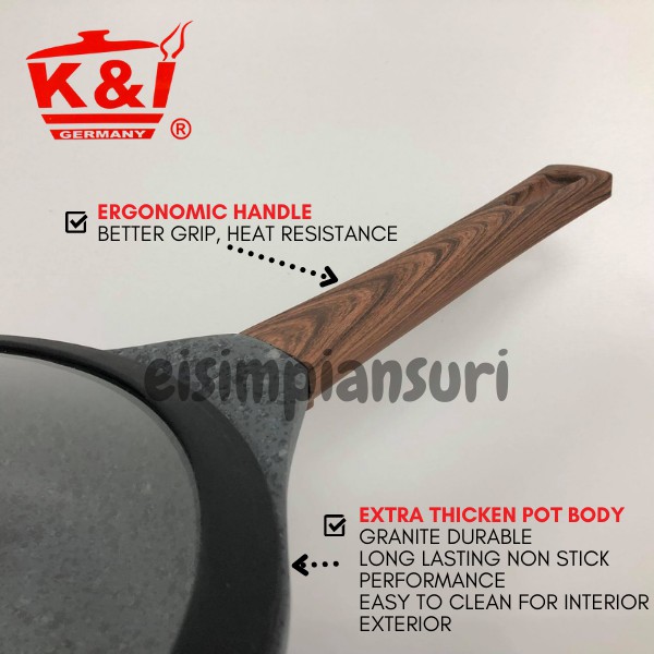 (Ready Stock!!) EIS Periuk Batu K&I Germany Granite Pan Frypan Non Stick Pan 平底鍋不粘鍋 PFOA Free Suitable for All Stoves