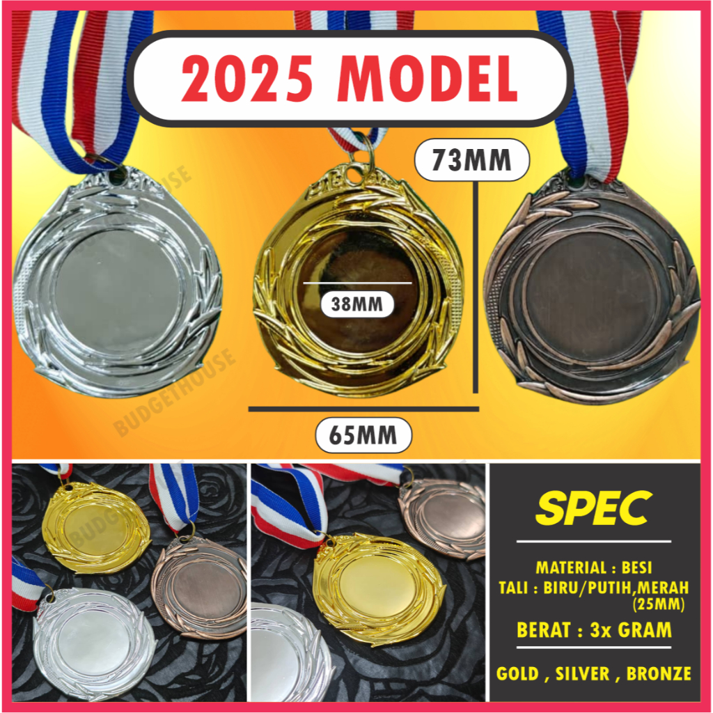 (KL/Perak) Free Design METAL Medal Both Side Sticker Medal Besi With Ribbon Alloy Gold,Silver,Bronze