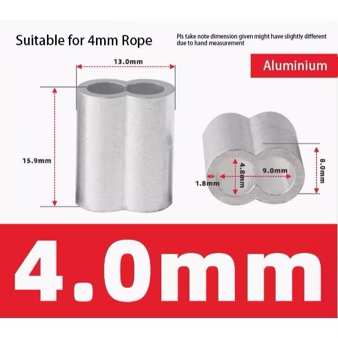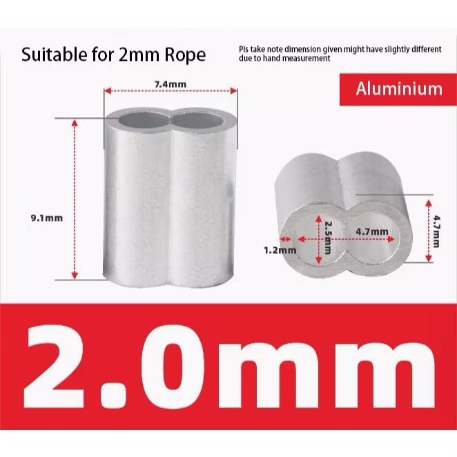 (LOCAL) Fishing Oval Aluminium Ferrule Wire Crimp Sleeve Loop Steel Wire Rope Cable Line Ring Tube Aluminum Crimping