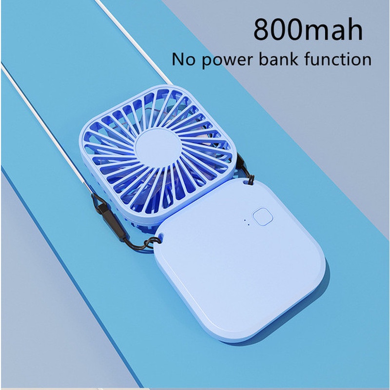 (Lanyard + Cable) 3 Speeds Summer Mini Portable Foldable Plastic Table Electric Fan With Hanging Rope / 180 Degree Travel USB Rechargeable Air Conditioning Cooling Fan
