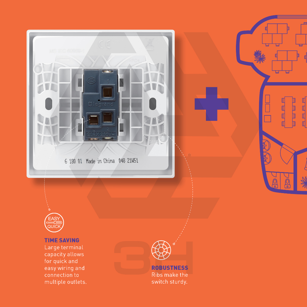 Legrand ELOE/KAWA Elite KB Series Suis/Soket Suis Flush Mounting Switch and Switch Socket