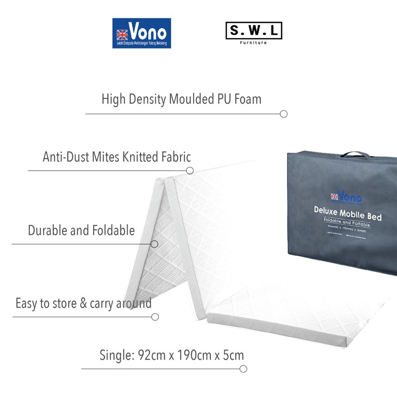 Vono Zen Single Foldable Mattress/Tilam Bujang/Premium Latex Feel, High Density Foam