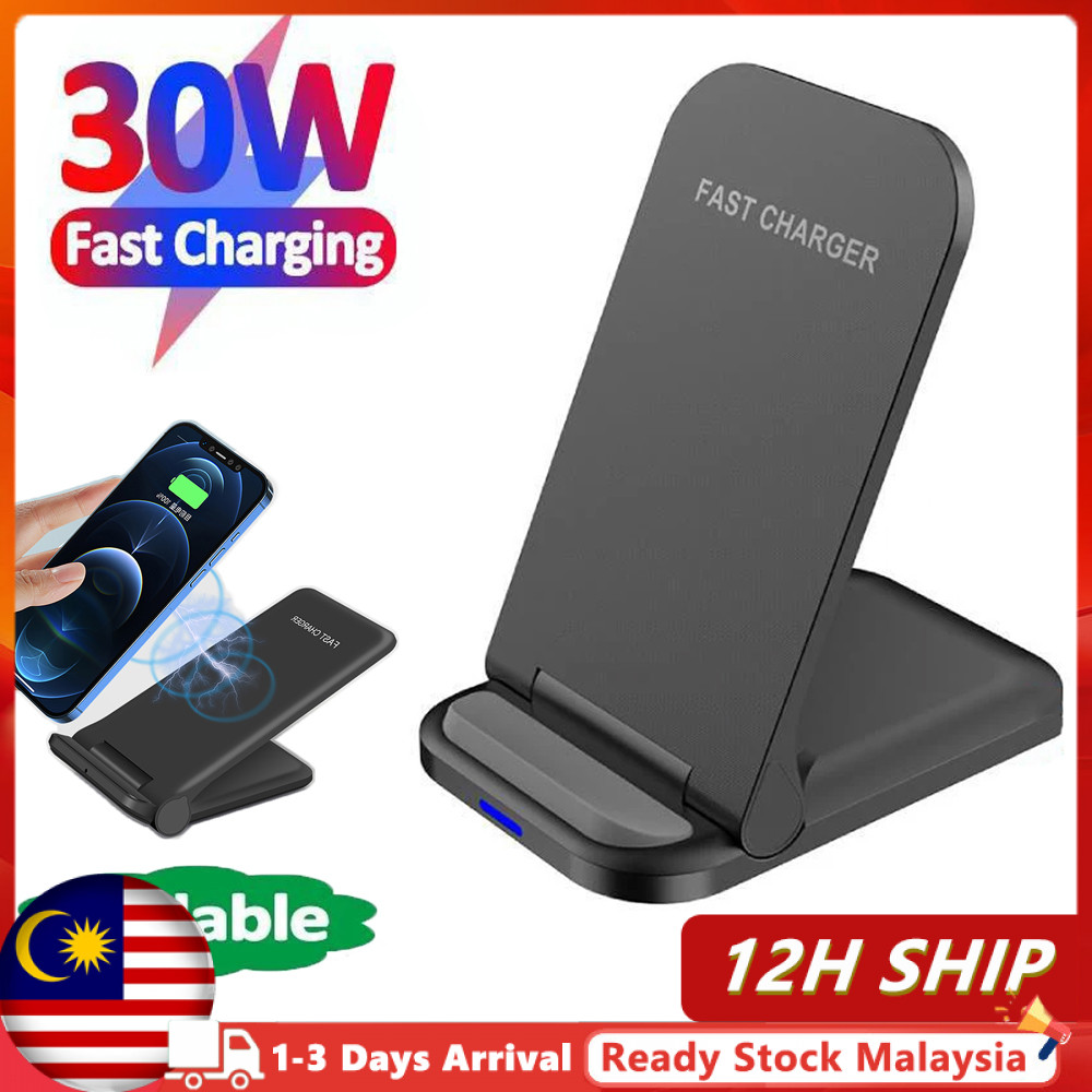 (🚚MY Stock🚚) 30W Fast Charging Wireless Charger with USB-C Port Foldable Phone Holder Quick Charge Dock Stand Station For IPhone 14 13 12 for Xiaomi Adapter