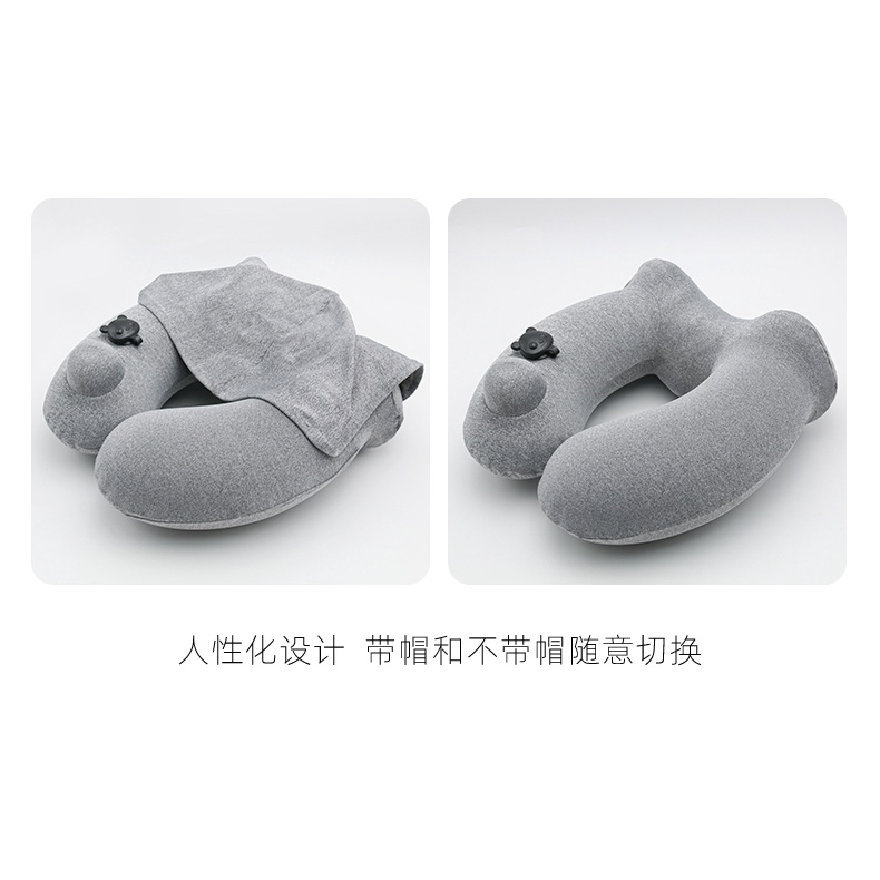 (Local Stock) Inflatable Travel Neck Pillow with hood/Portable