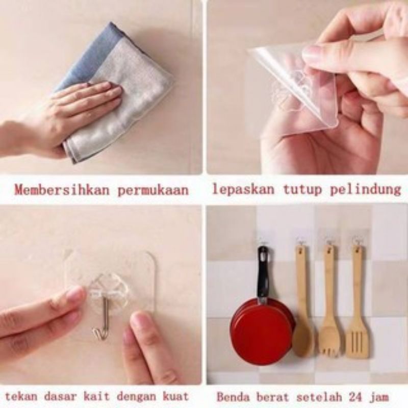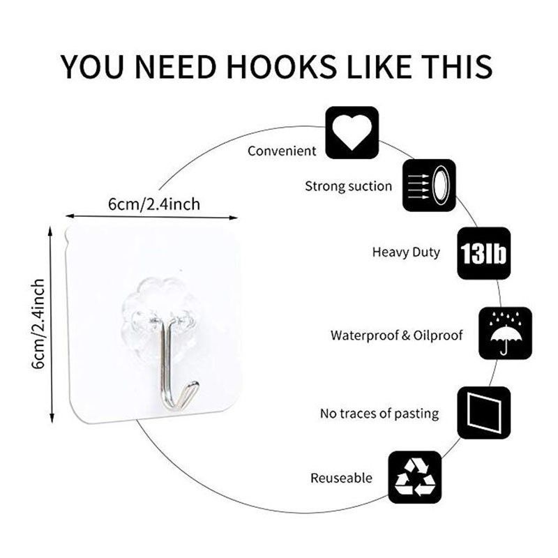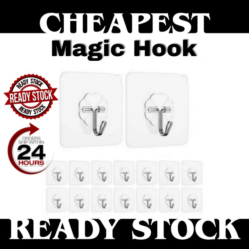 (M'sia Stock) Magic Hook Transparent Wall Kitchen No Nails Strong Sticky Sucker hook