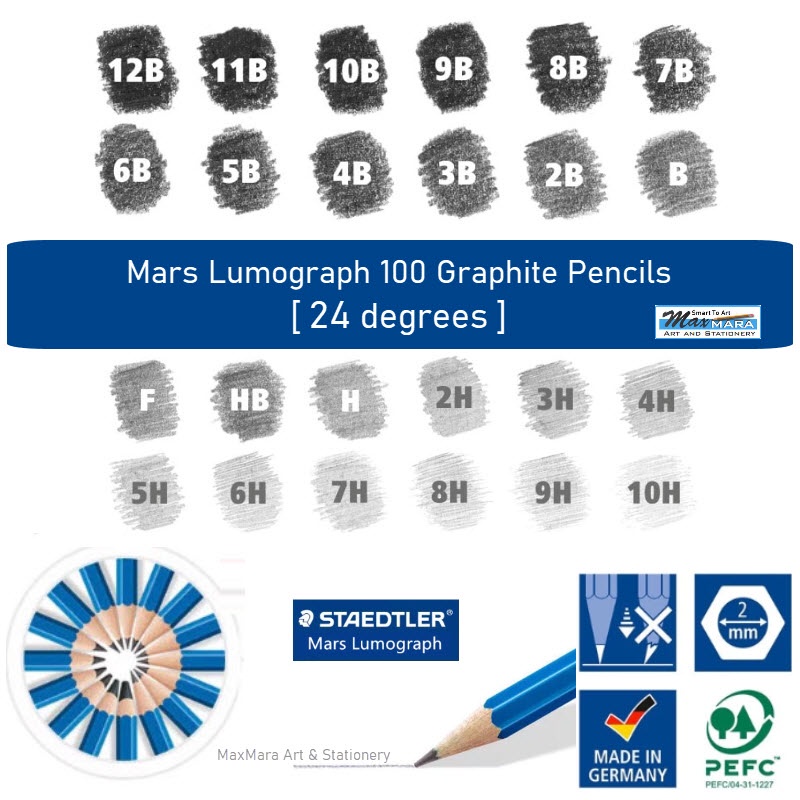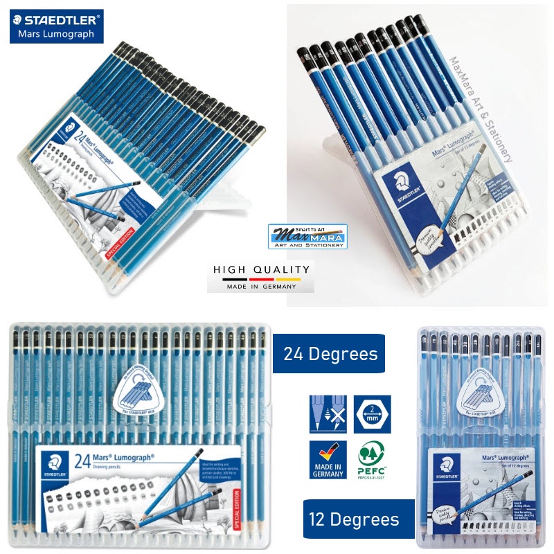 (MAXMARA Art)12/24 Degrees STAEDTLER Mars Lumograph 100 Professional Drawing Pencil Set
