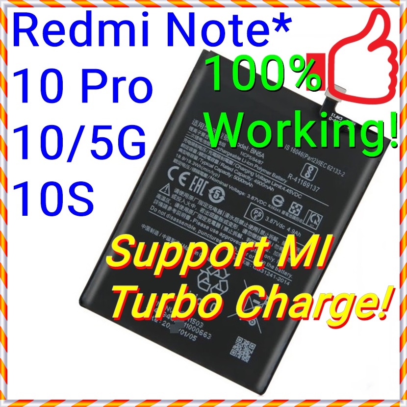 (MI Turbo Charging) NEW ORI Stable Battery for XIAOMI Redmi Note 10 Pro 4G 10 5G 10S /BN5A BN59 BN53 (ORIGINAL Grade)