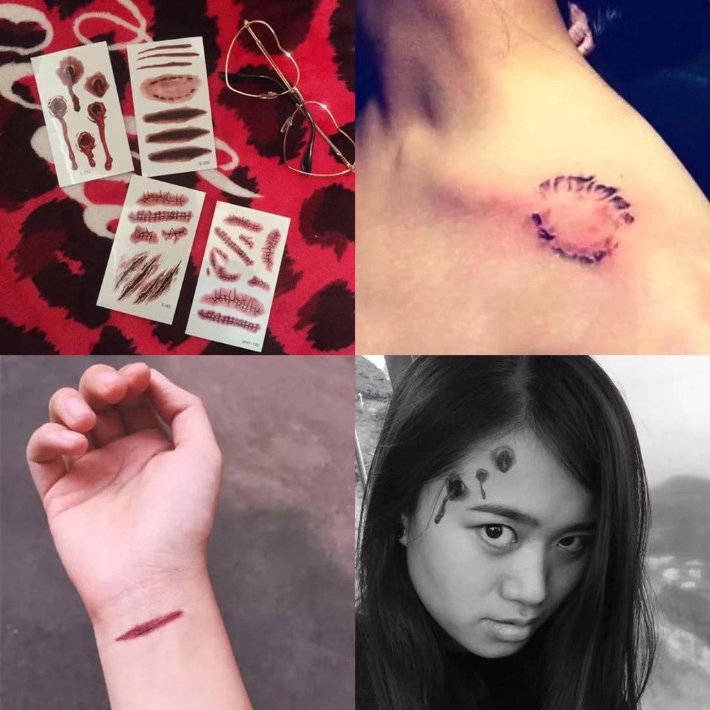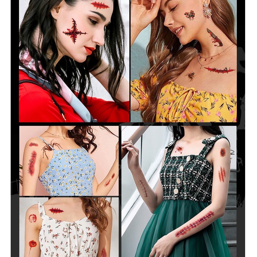 (MW)1Pc Halloween Tattoo Stickers / Simulation Horror Bleeding Suture Scars Stickers / Fake Scar Body Sticker / Horror