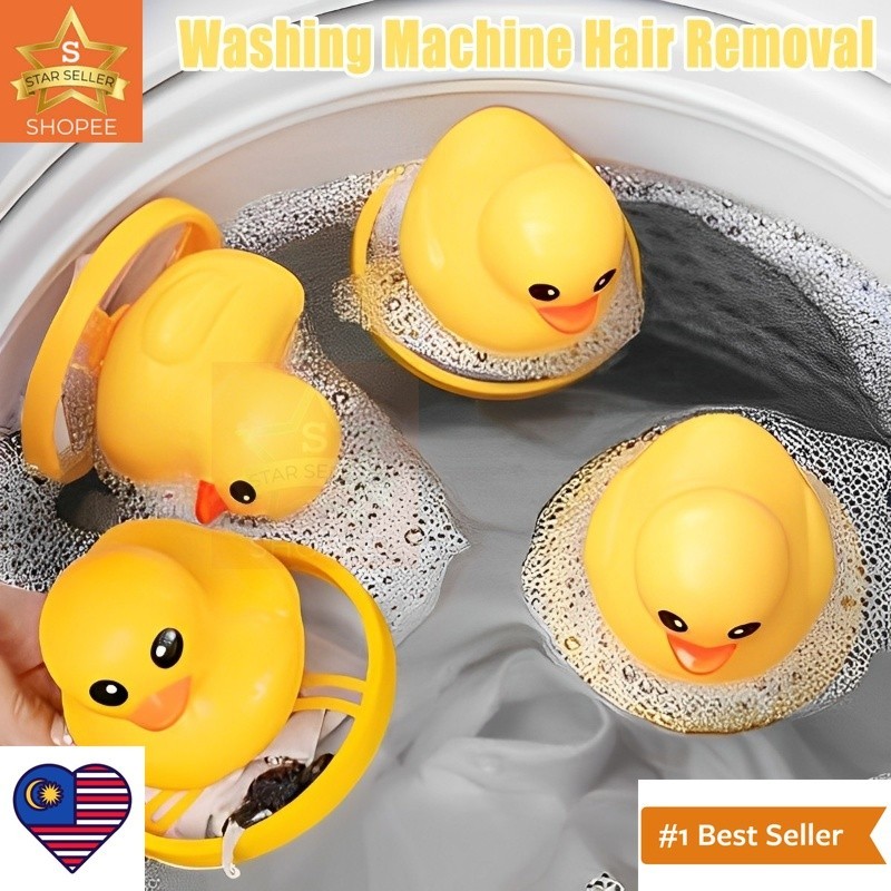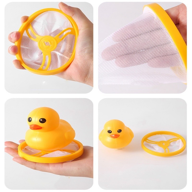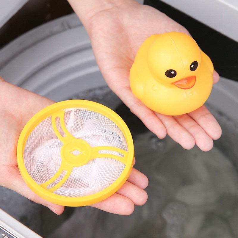 (MW)Little Yellow Duck Shaped Washing Machine Hair Removal Catcher Reusable Laundry Floating Mesh Filter Pouch Cleaning