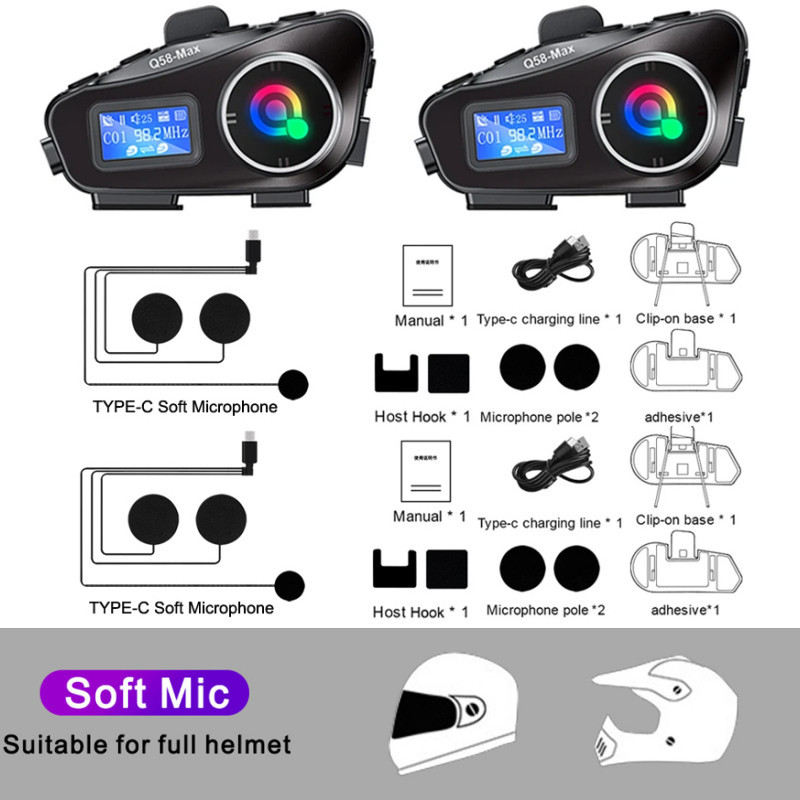 (🔥MY stock🔥) BT5.3 Motorcycle Intercom Helmet Headset For 2 Riders 500M Interphone FM Radio Music Share LCD Display Headphone with flashlight