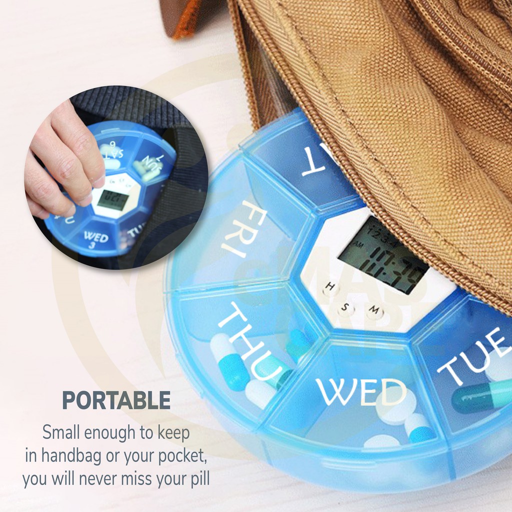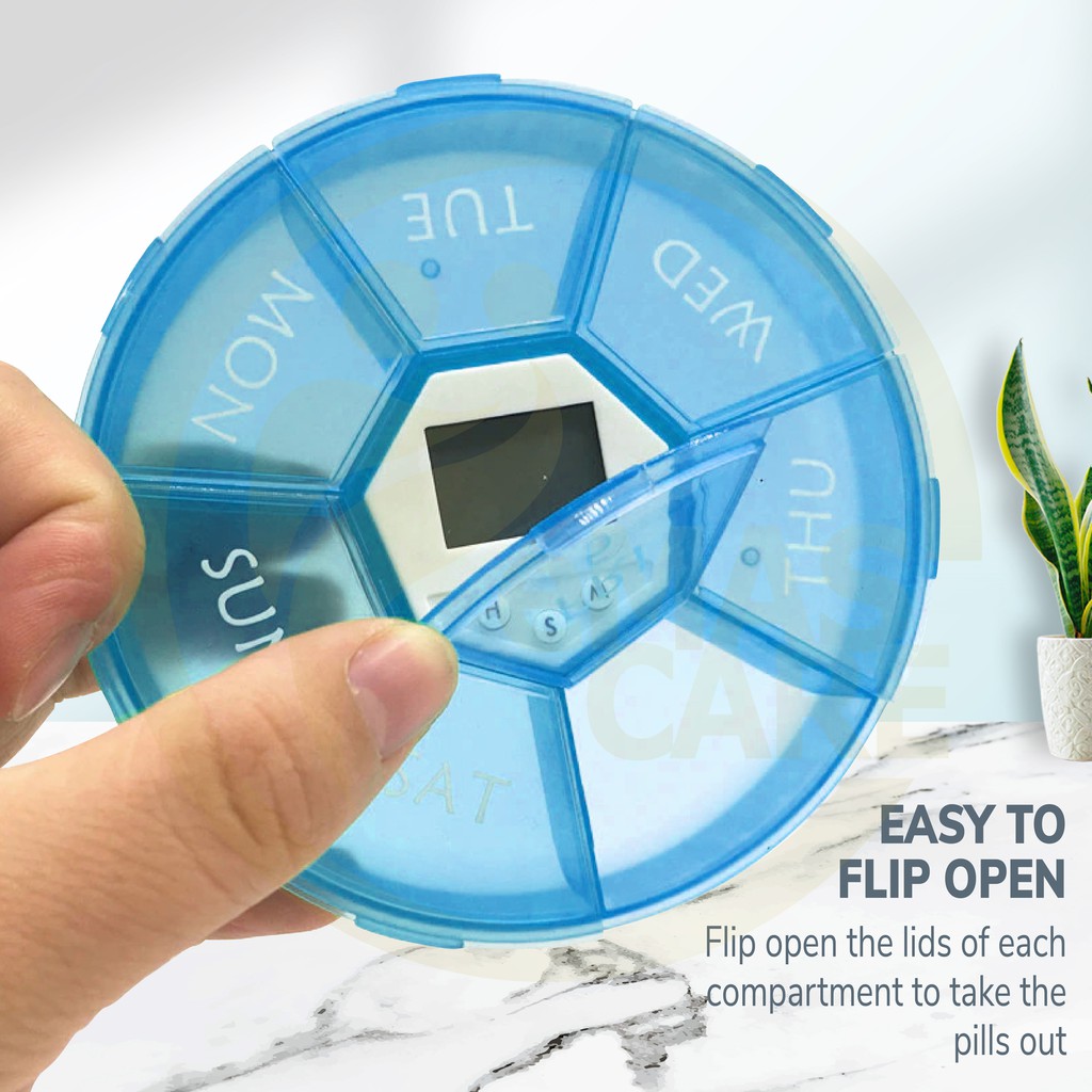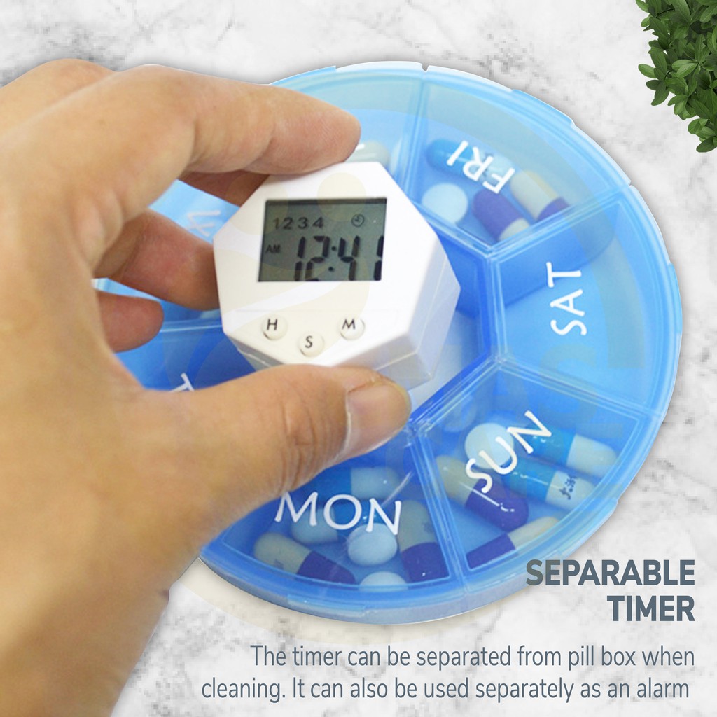 (NEW) 7 Daily Pill Box Electric Reminder Timer Alarm Weekly Round Organizer Medicine Case Supplement Bekas Simpan Ubat